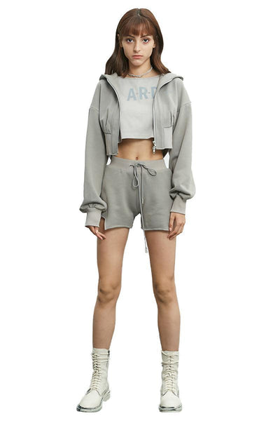 Styled with Patched Zipper Hoodie in Ash Grey.