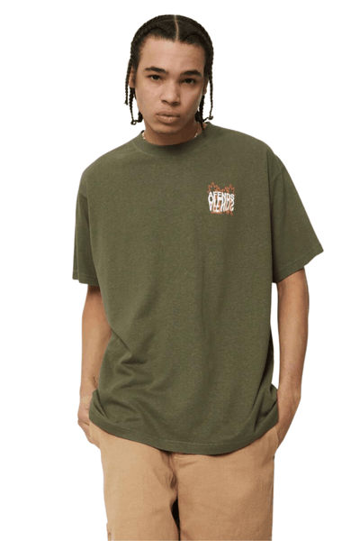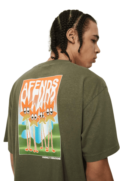 Toking on some herb vibrations in this t-shirt. The party is around the back for this one - enjoy a relaxed fitting shirt, retro ribbed neckline small front logo, and a bold, warped graphic on the back. Always opt for 100% eco-friendly with our high-quality blend of recycled cotton and organic cotton jersey.