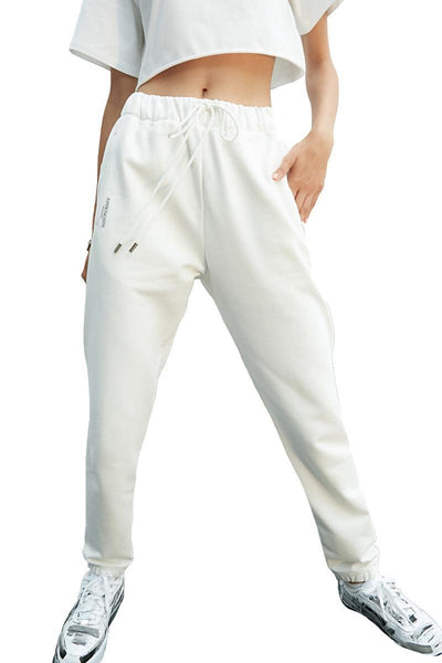 Styled with White Patched Zipper Hoodie and White Crop T-Shirt.