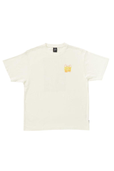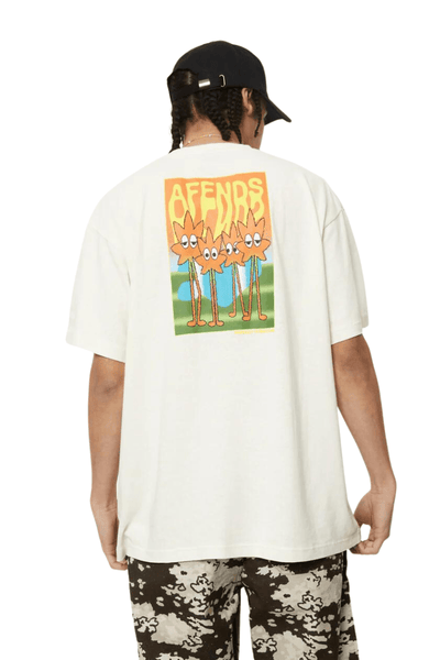 Toking on some herb vibrations in this t-shirt. The party is around the back for this one - enjoy a relaxed fitting shirt, retro ribbed neckline small front logo, and a bold, warped graphic on the back. Always opt for 100% eco-friendly with our high-quality blend of recycled cotton and organic cotton jersey.